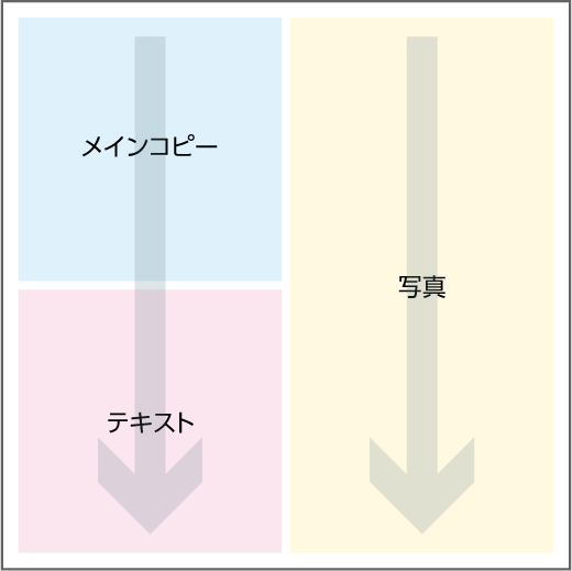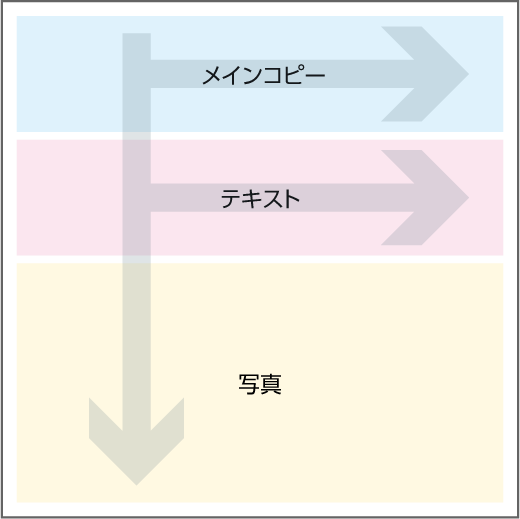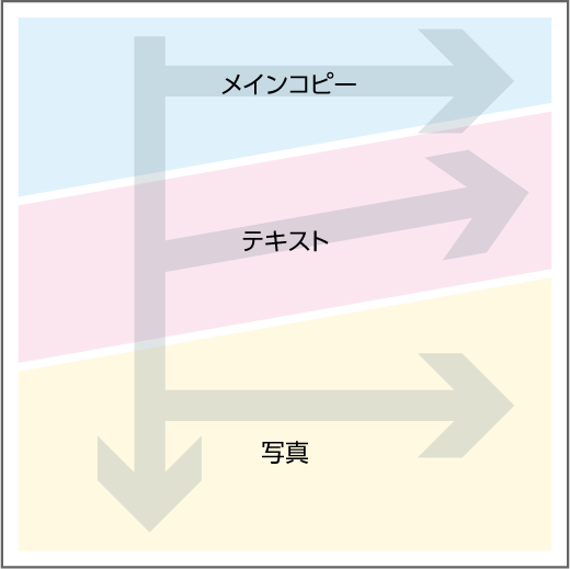 Z型とは、横書きの紙面である場合、視線が左上から右下へ「Z」の形を描くように動くことを前提としたレイアウトです。