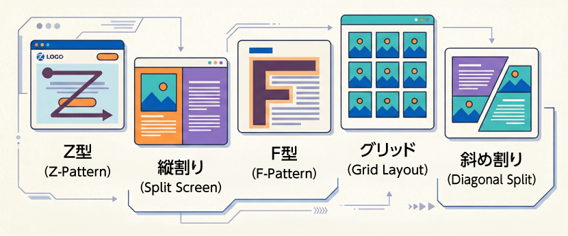 今回ご紹介した5つのレイアウトは、いずれも「人の視線の動き」をもとに情報を整理し、伝えたい内容を的確に届けるための基本形です。